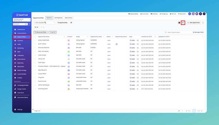 Step 1: Navigate to Opportunities > List View.