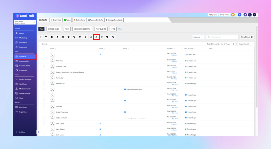 - Only users with an 'Admin' role will have the option to import and export contacts.
