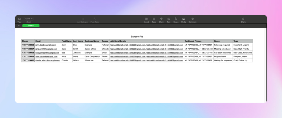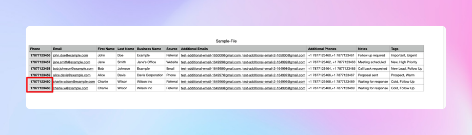 Example: My CSV has mixed emails and phone numbers, some contacts share emails like