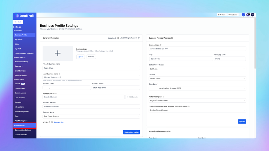 The Community Settings section in DealTrail allows you to configure the domain for your community groups, ensuring a professional and branded experience for your members. Setting up a custom domain for your community improves credibility and aligns it with your brand identity.