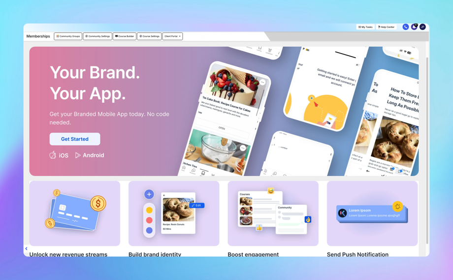 • Seamless Member Access: Members can log in to view courses, community groups, and progress.