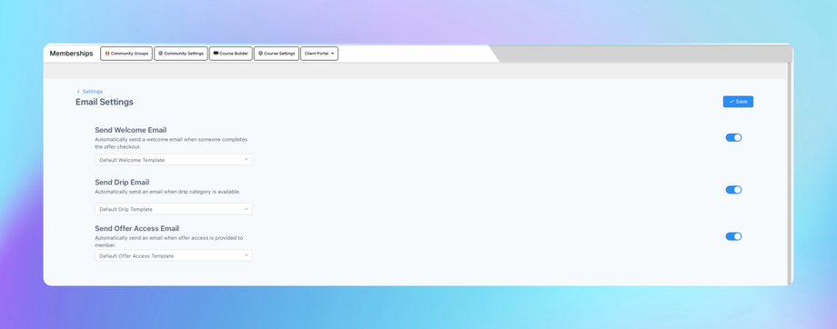 • Offer Access Emails: Automatically send access instructions to members when they purchase a course or membership offer.