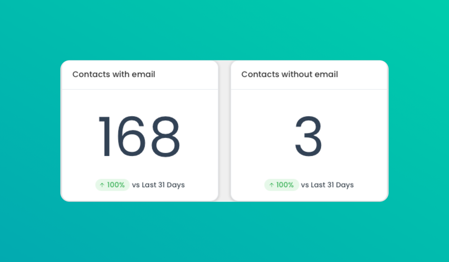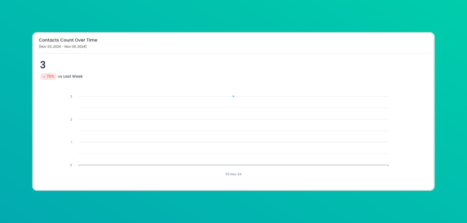 This metric tracks the count of new contacts over a specified period (daily, weekly, monthly). It provides insights into contact growth trends and seasonality, helping you understand when you’re most successful at acquiring new contacts.