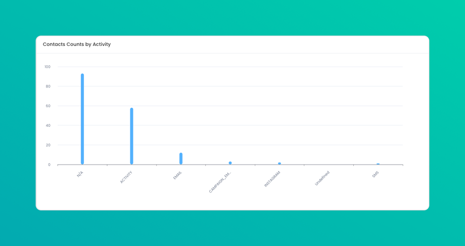 Shows the count of contacts based on their recent activities, such as emails opened, clicks, form submissions, calls, or appointments. Activity categories may vary depending on the interactions tracked in your system. Provides insight into the engagement level of contacts, helping you identify active versus inactive contacts.