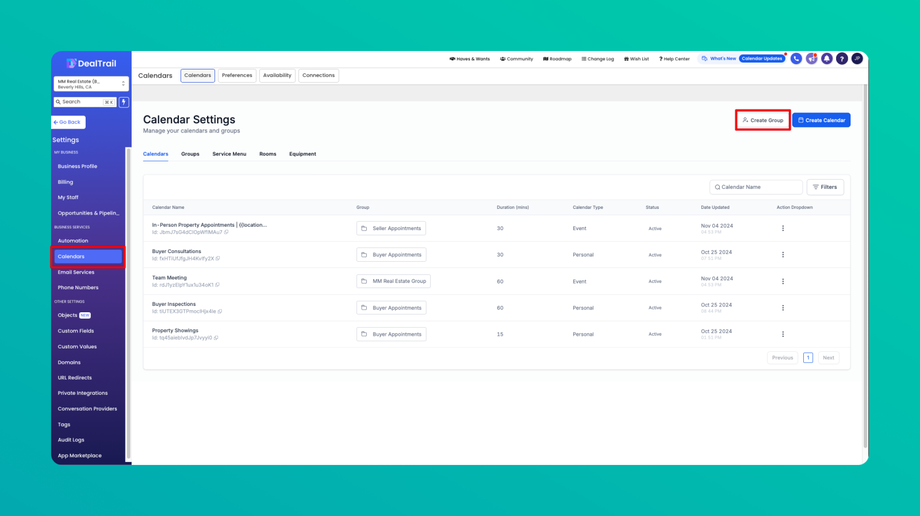 📅 DealTrail Group Calendar Overview