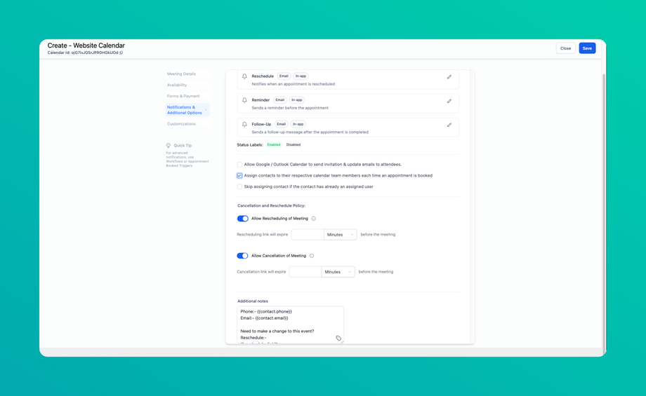 - Assign contacts to their respective calendar team members each time an appointment is booked