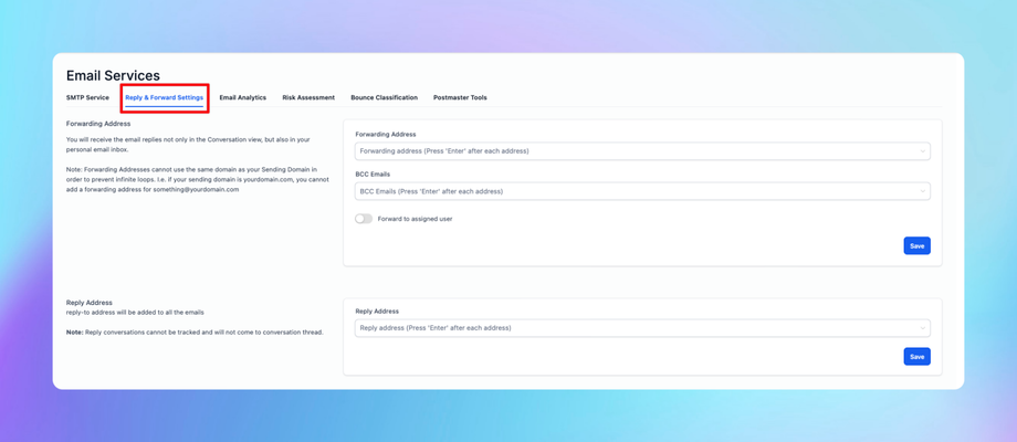 This section enables automatic handling of email replies and forwards, critical for campaigns and user communication.