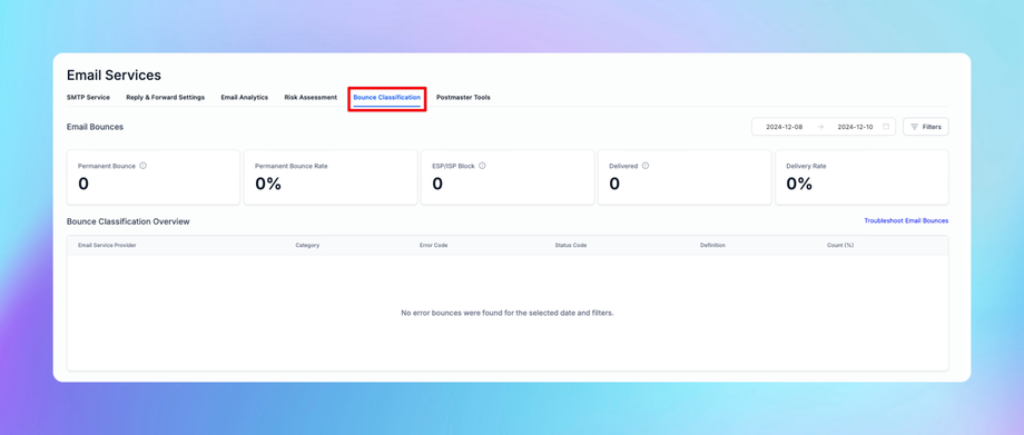 Bounce Classification provides insights into email deliverability issues, categorized as: