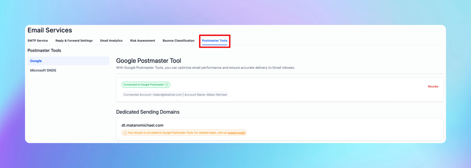 • Navigate to Settings > Email Services > Postmaster Tools.
