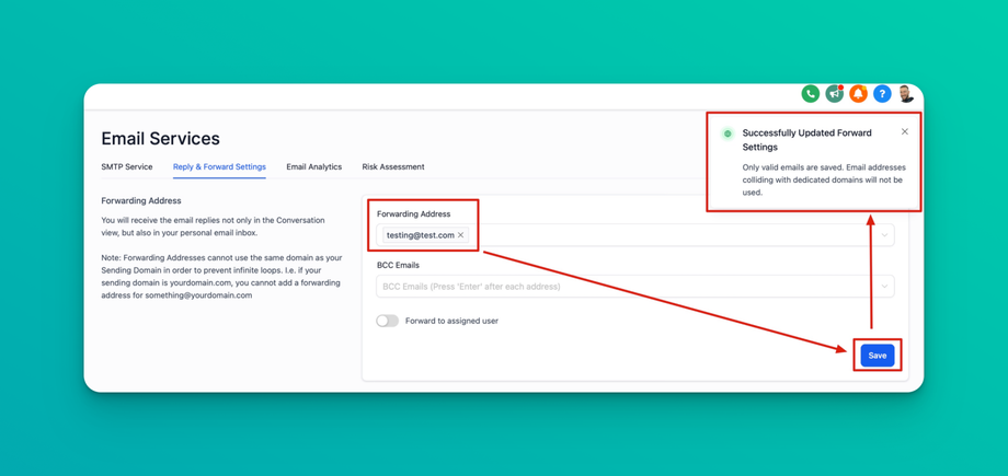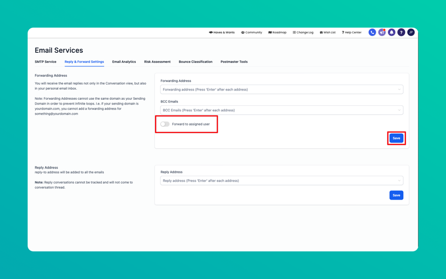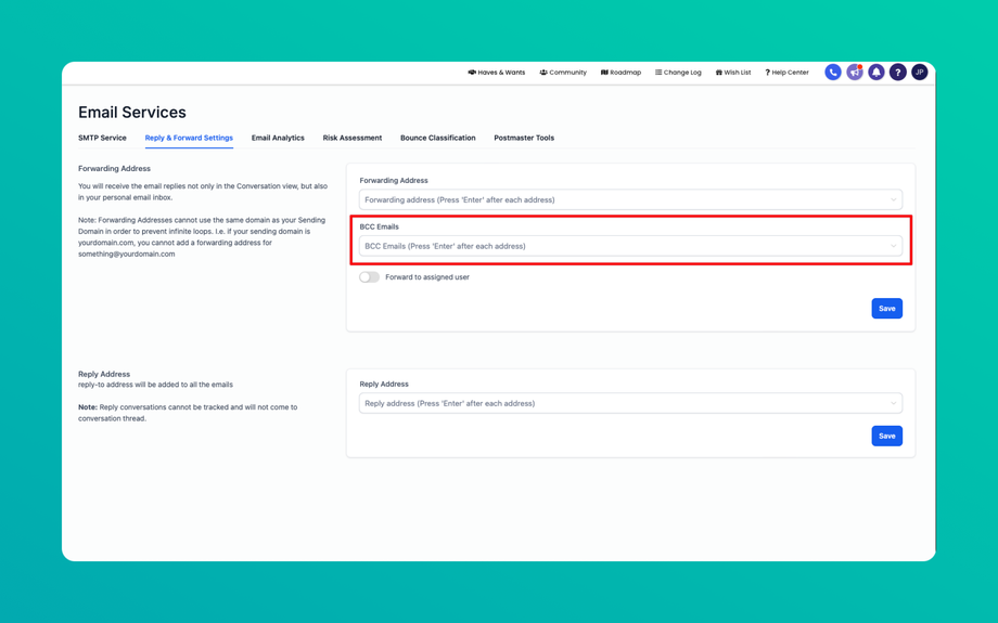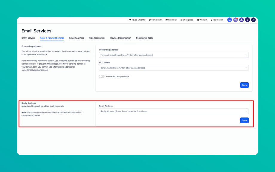 Now we have the option to Add a reply-to address. All incoming emails will be sent to that email address instead of routing to the Conversation tab.