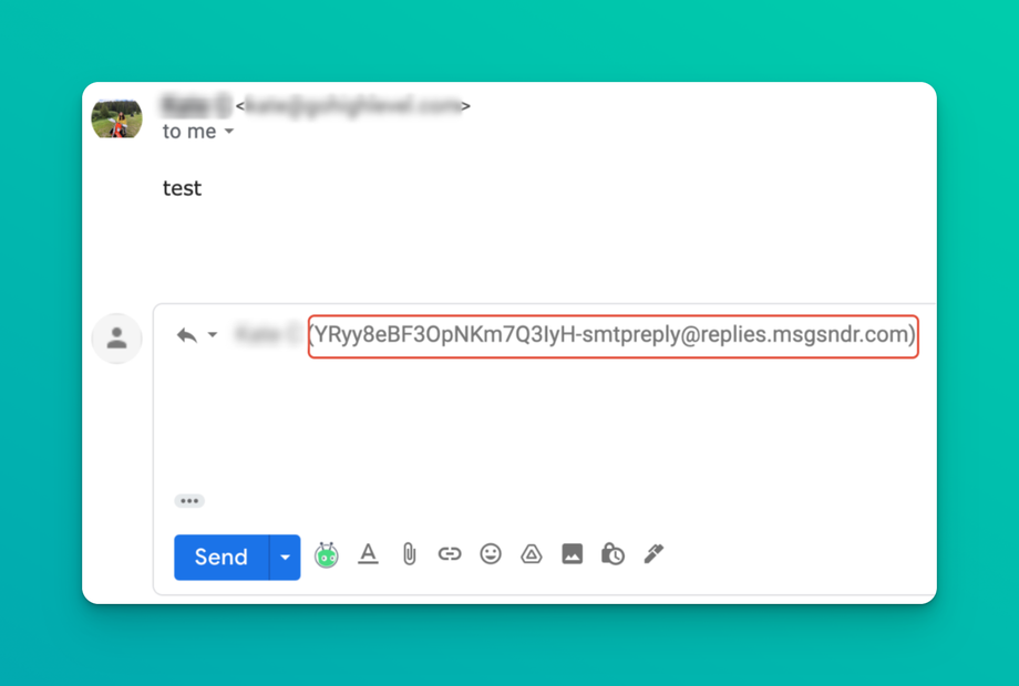 The highlighted email shown in the screenshot below will be the reply-to email address. We will not be able to capture the email replies back into the Conversation tab. But responses will be going to the configured sender email in the inbox.