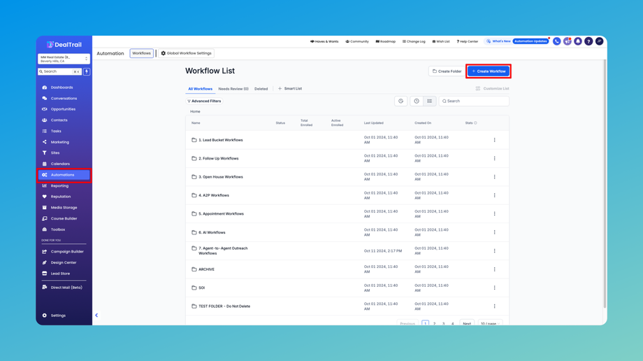 If you already have a workflow created for your opportunities, or a workflow that manages leads and contacts that you would like to use when updating the statuses of your opportunities, find that workflow and open it.