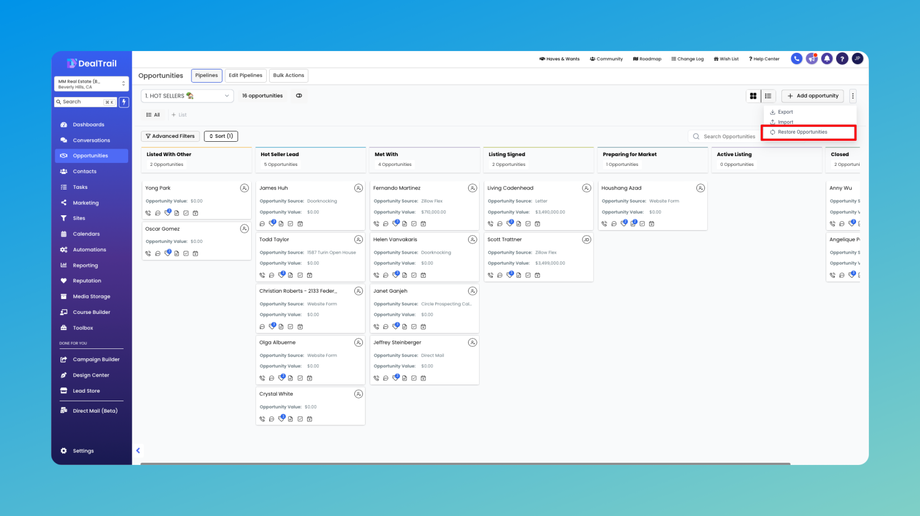 Opportunities are pivotal in managing potential sales within DealTrail. This step-by-step guide will walk you through the process of creating opportunities, enabling you to efficiently track contacts through the sales pipeline.