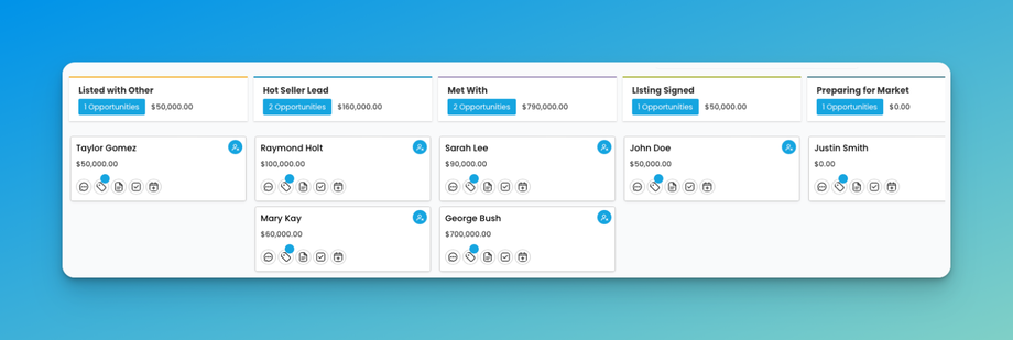 - Move the opportunity through different stages by dragging the cards as it progresses towards closure, updating its status accordingly.