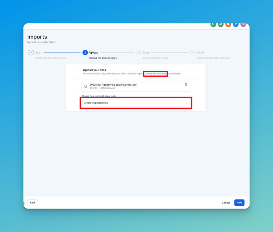 - Create and Update Opportunities: Choose this option for a combination of adding new records and updating existing ones.
