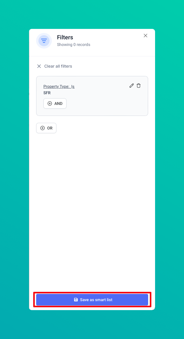 - To permanently save your filter(s) as a list, click “Save as smart list” at the bottom of your screen.