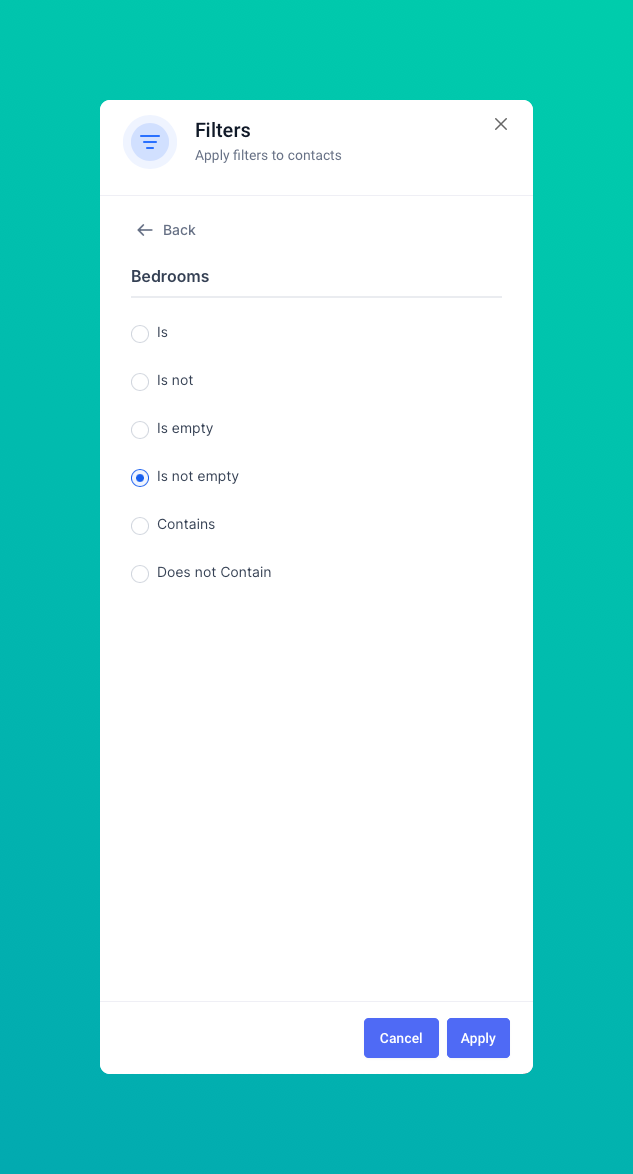 For instance, if you filter for "Bedrooms greater than 1" and save it, any contact that meets this criteria, will automatically appear in the list.