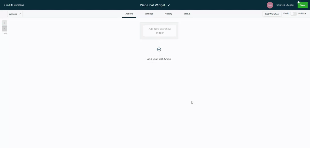 This guide will walk you through creating a workflow to handle web chat widget submissions on a client’s website. The workflow will notify users and handle incoming messages from the chat widget.
