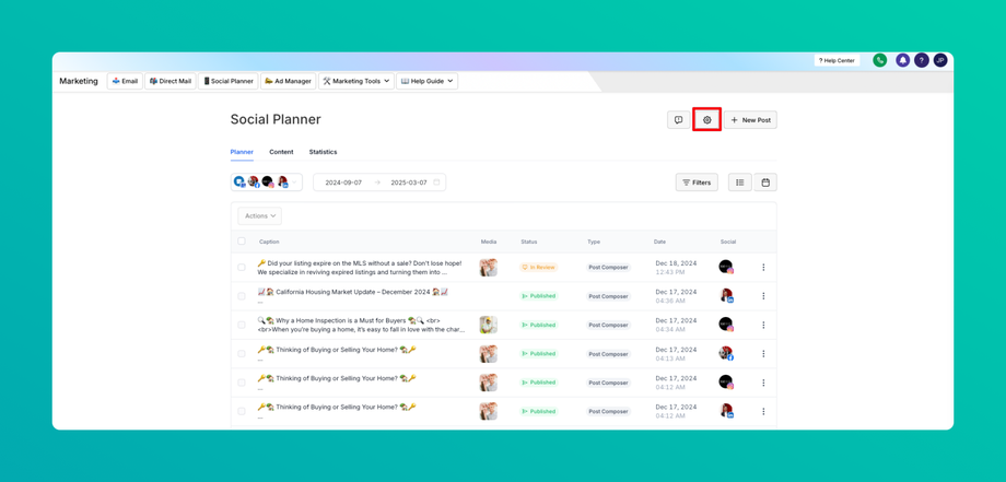 OR after visiting the overview of Social Media will have a Setting option (Gear icon)