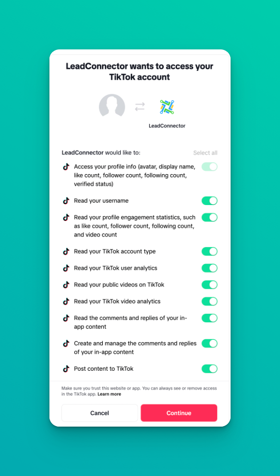 Connect TikTok Personal Account