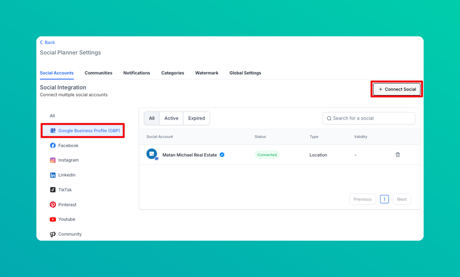 Step 1: Go to Social Planner > Setting