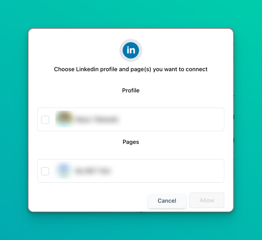 Step 5: Next step is to choose the Linkedin Profile and Page(s) for the social planner.