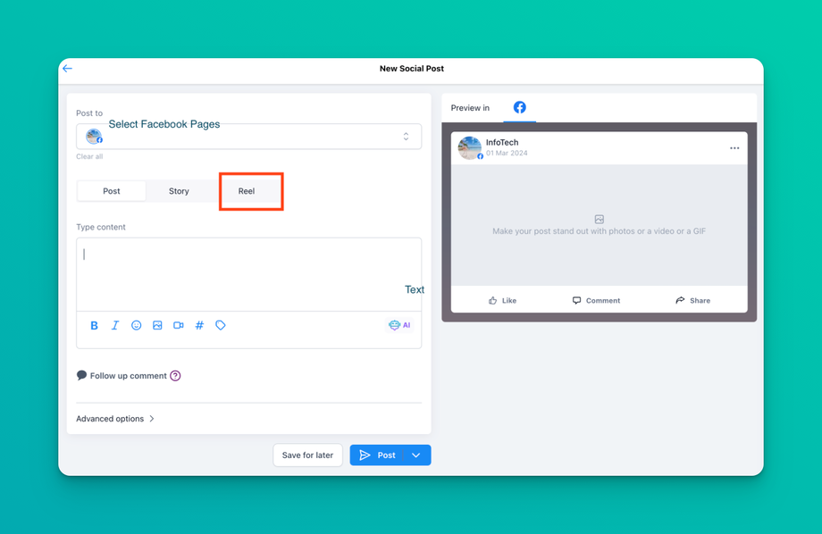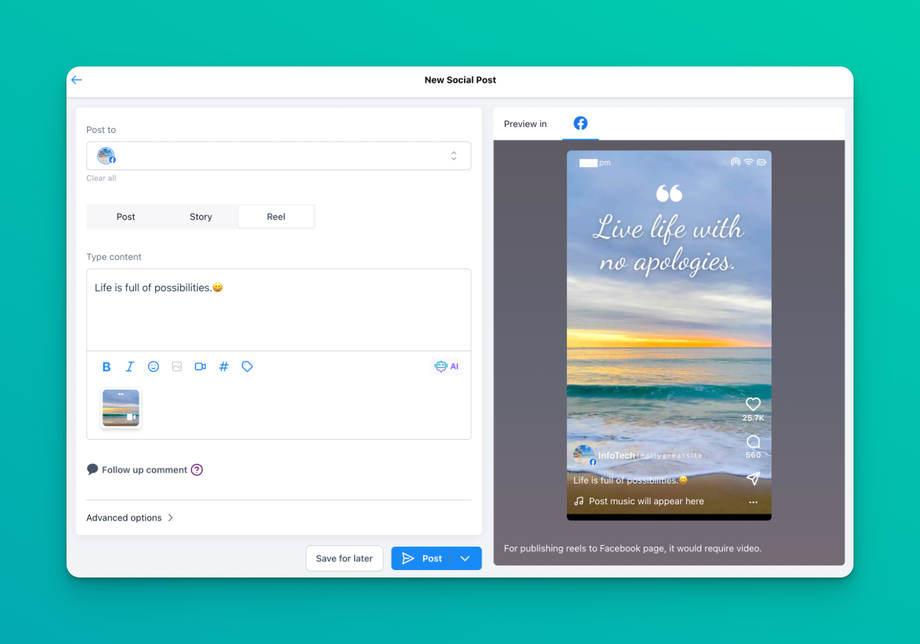 Short form videos are in trend with ever-growing way in social media marketing world. With the same, in social planner we are launching Facebook Reels.