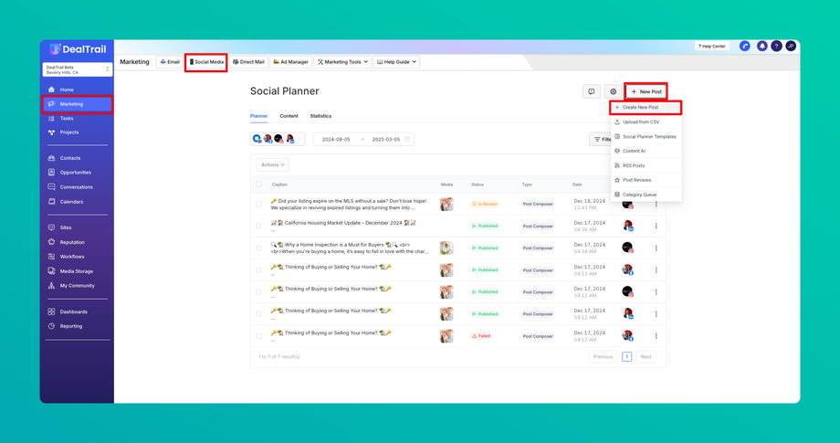 - Click on the "Create New Post" button.