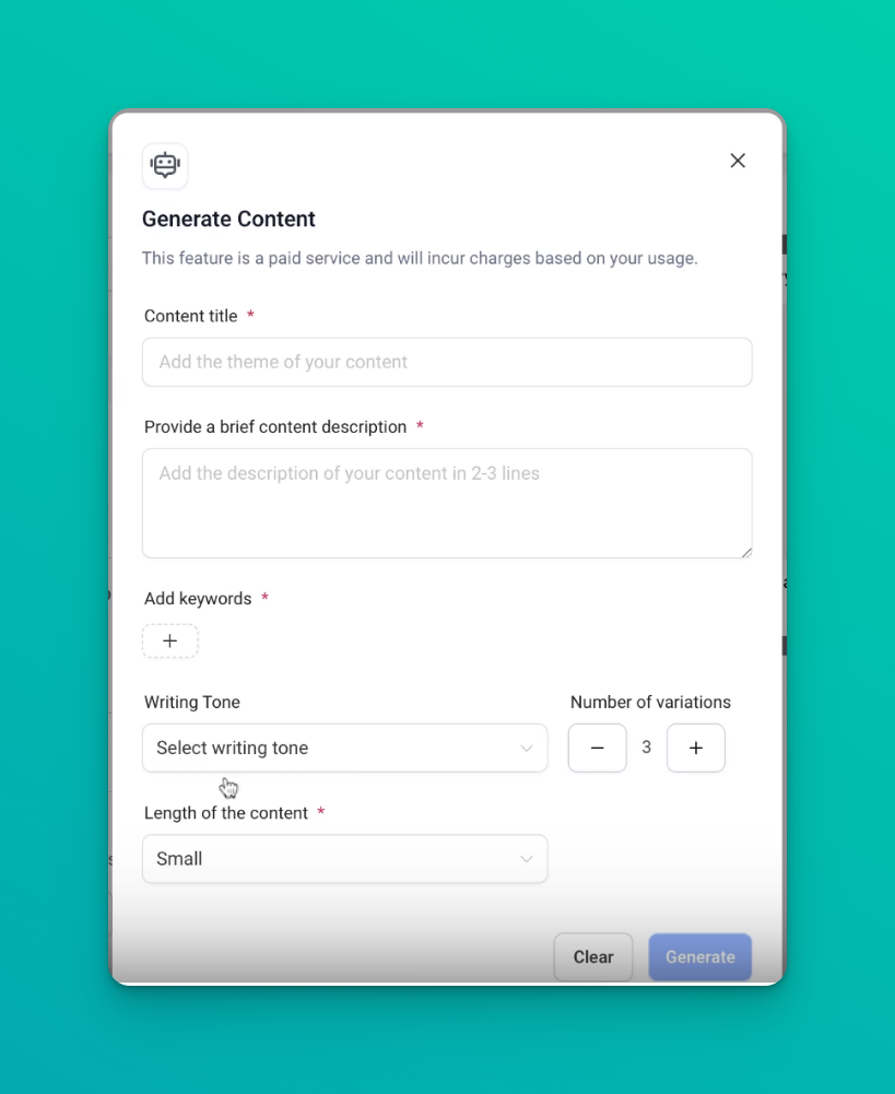 AI Integration: The integration with Content AI means users can leverage artificial intelligence to generate content up to 900 words, adapting it to different content sizes (small, medium, and large) based on the type of social media being used.