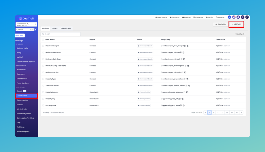 Create Custom Fields: Navigate to 'Custom Fields' under settings. Click on 'Add Field' or 'Create Field'.