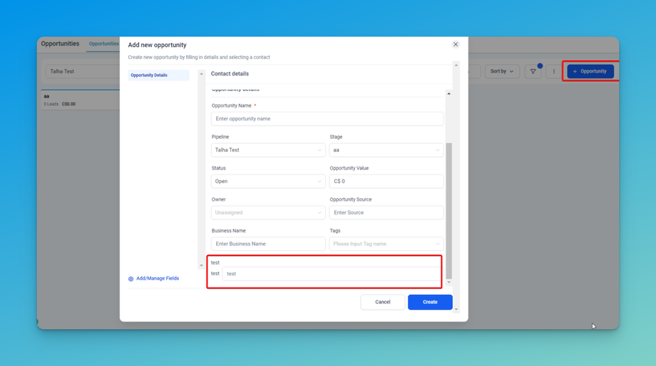 The Custom Fields for Opportunities feature enables businesses to add, customize, and organize specific data fields for their sales opportunities.