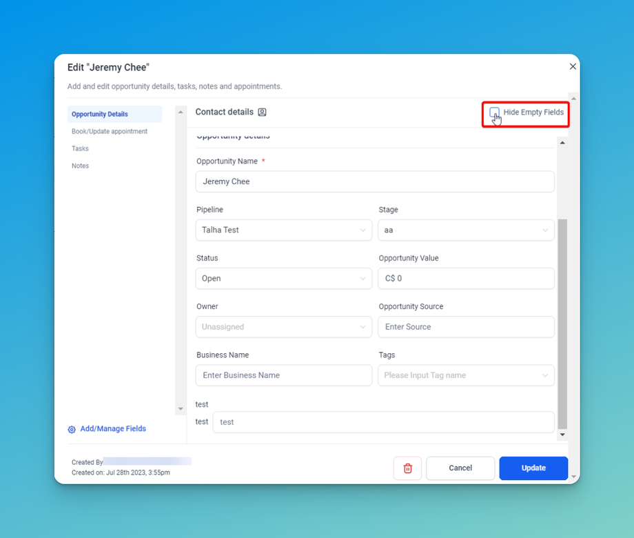 Hide Empty Fields: If you have a lot of custom fields and don't want to see the ones that don't have any value, you can turn on the 'Hide Empty Fields' feature.
