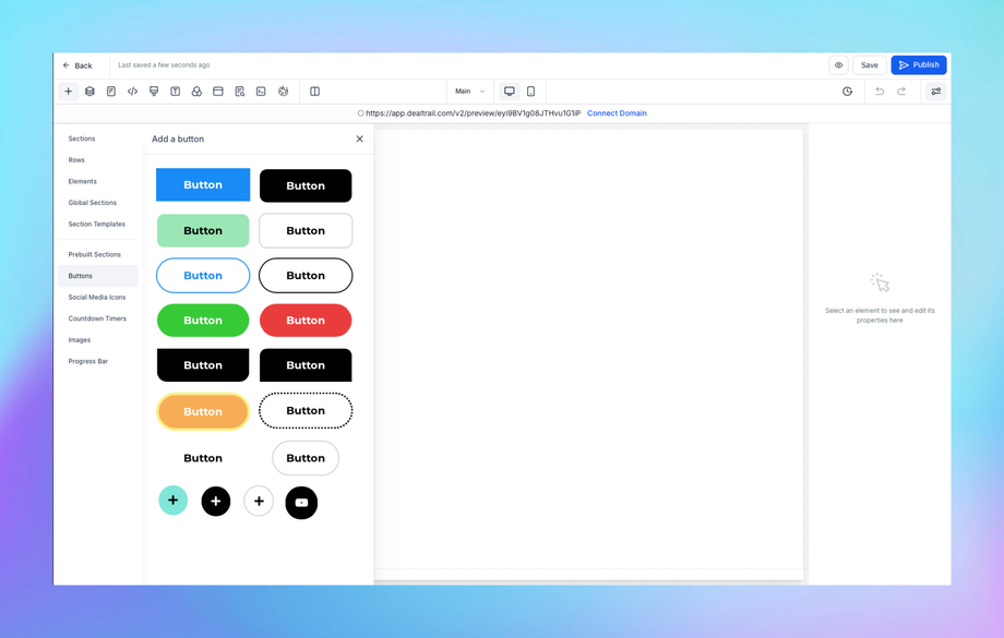 1. Prebuilt Buttons: A diverse collection of aesthetically pleasing, predesigned buttons is now available to give your funnels/websites a professional touch without the hassle of starting from scratch.