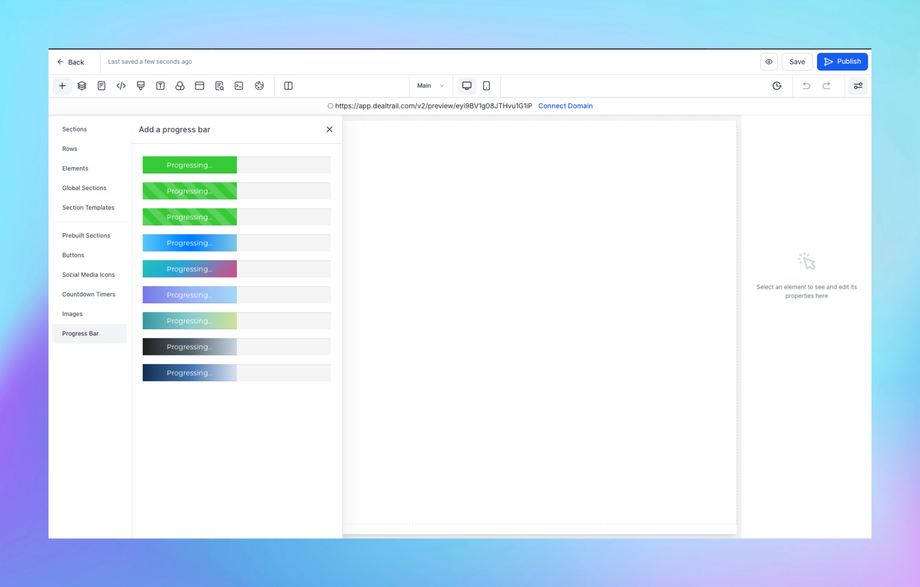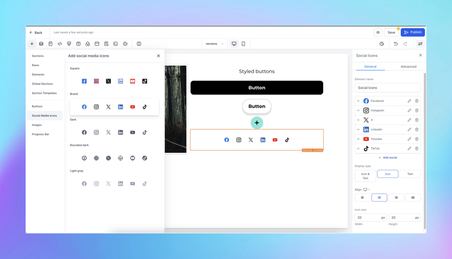 We have released something cool on the left sidebar - Prebuilt Elements. Powerful design elements that will streamline your design process and bolster your website’s functionality. The latest enhancements include prebuilt buttons, images, social media icons, and a progress bar.