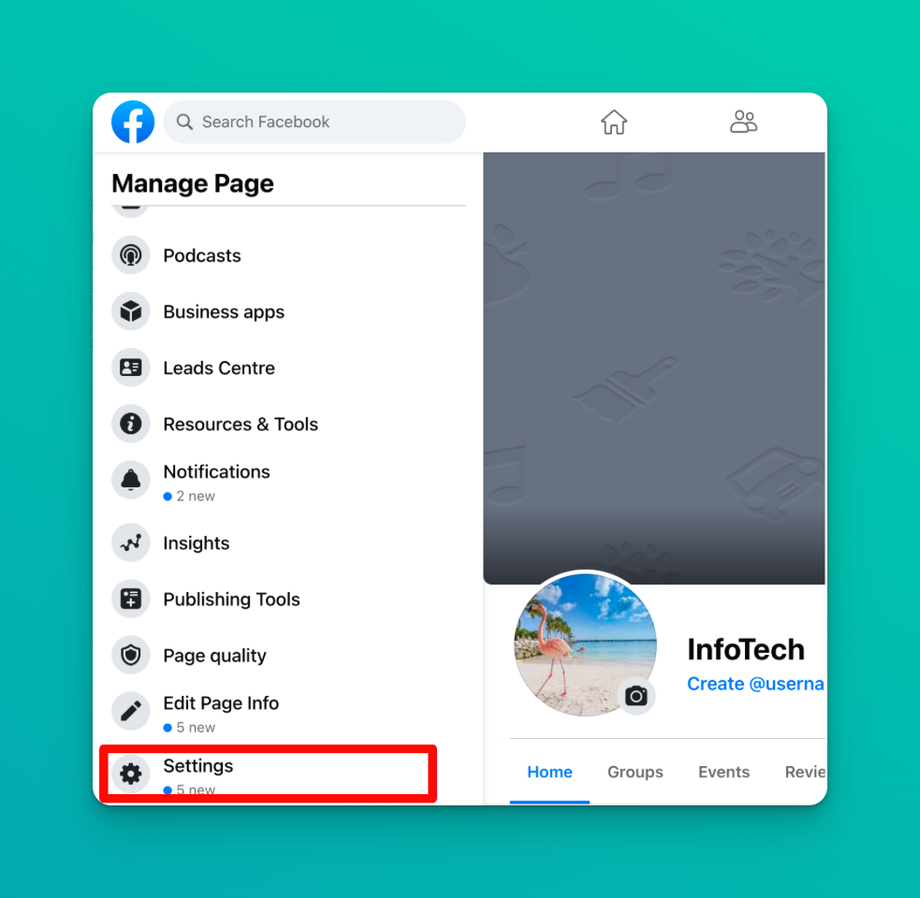 - Now, your selected Facebook page will be open. Go to "Settings" on the screen's left side. Select Settings at the bottom of the Manage Page menu on the left.