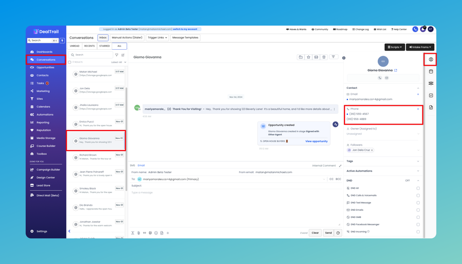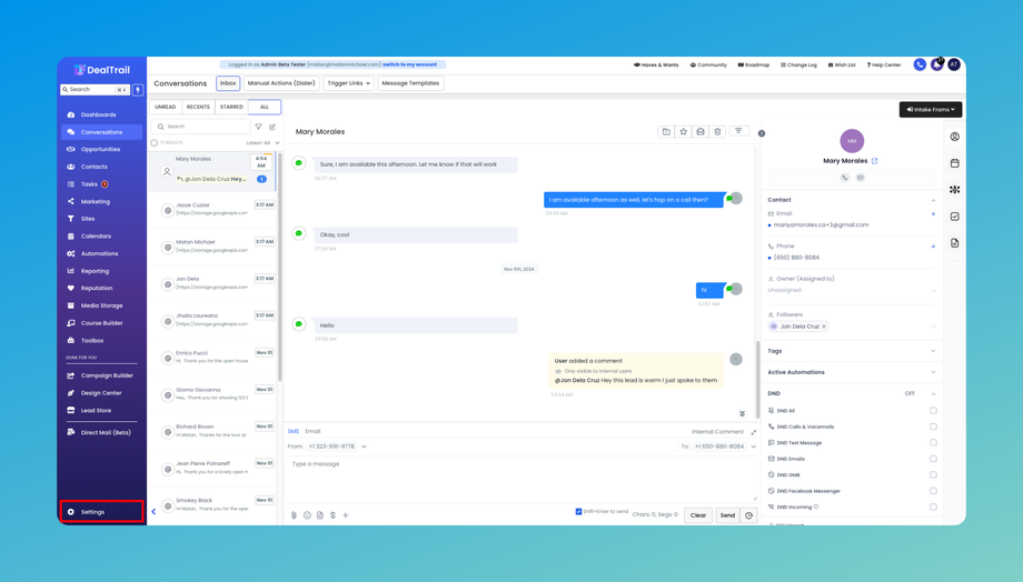 Scenario: A lead receives a SMS or call from a DealTrail campaign. The lead calls back the number they see on their caller ID, which is the phone number originally setup (seen in Settings -> Phone Numbers). Where does the call go?