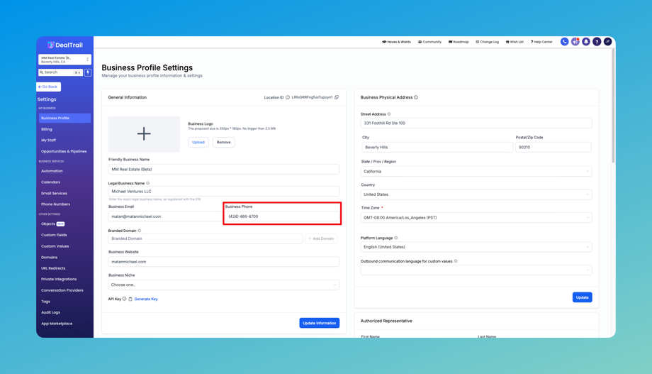 | Priority 4: Business Profile Settings. Is there a number in the Company Phone field in the Business info tab on the location settings page? |