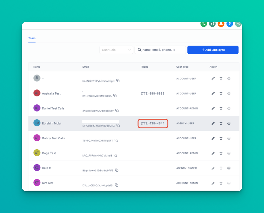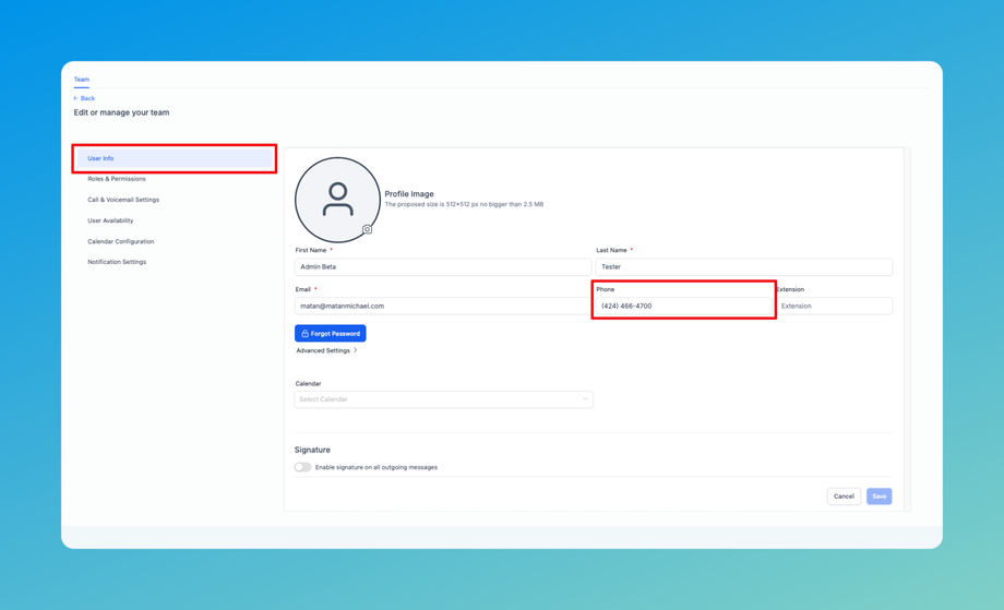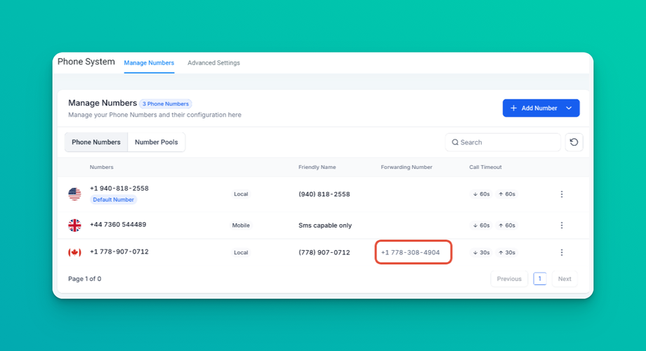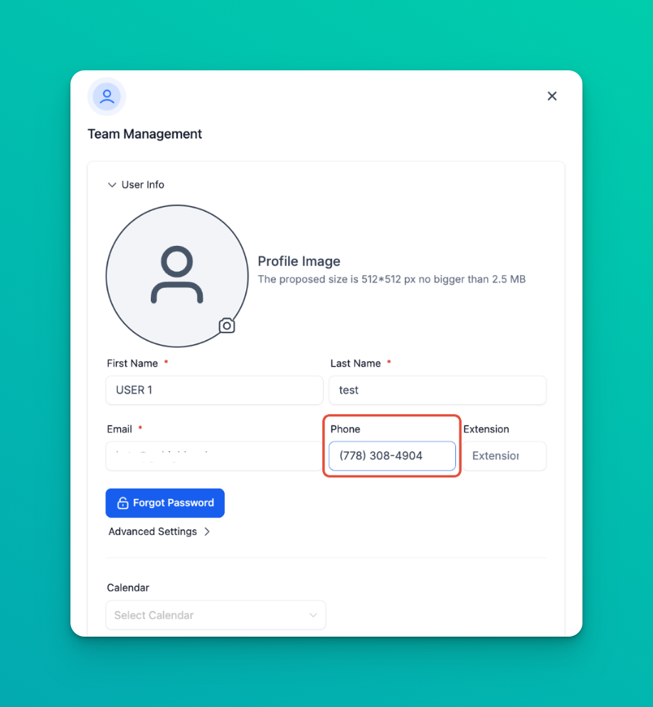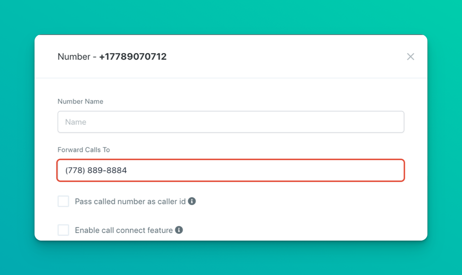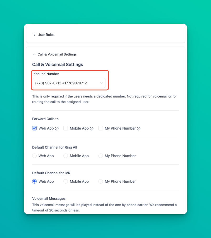That means all calls to the assigned Phone number (778) 907-0712 will be routed to this user's phone number.