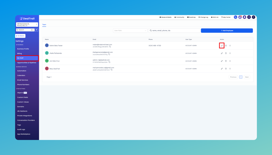Click on My Staff > Click on Edit (pick any one user to edit)
