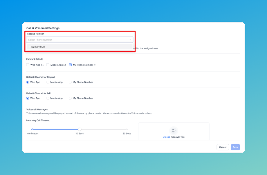 Or you can assign the Phone number to a user and receive Inbound Calling on Mobile APP.