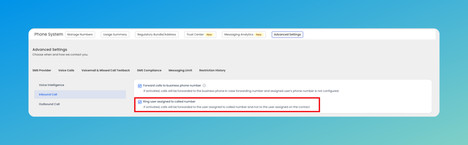 3. How to check if 'Ring user assigned to called number' is checked or not?