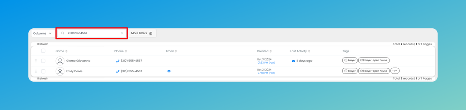 Lookup the phone number of the contact who called the Phone number on the top left Quick Search box