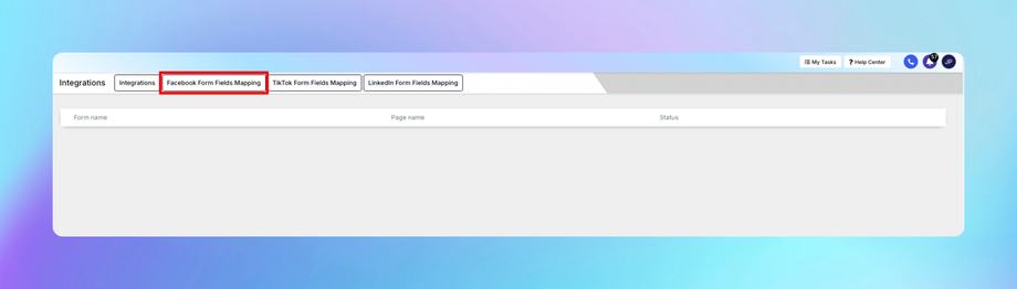 1. Navigate to Settings > Integrations > Facebook Form Fields Mapping.