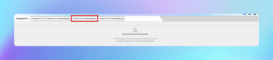 1. Navigate to Settings > Integrations > TikTok Form Fields Mapping.