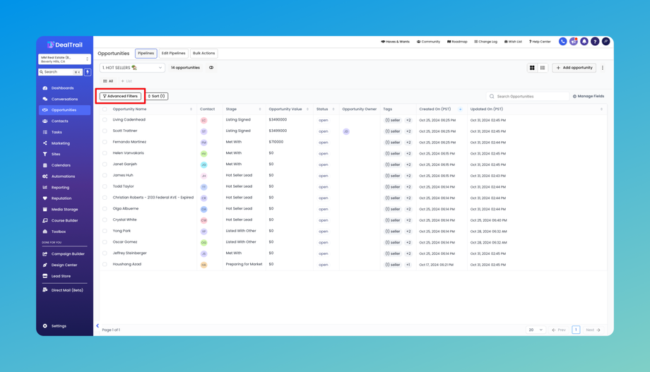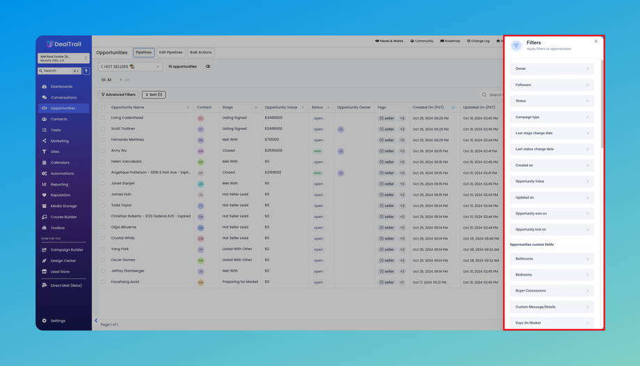 Full Feature Parity with Board View: All the powerful features you use in the board view are available in the list view too. This includes advanced filters to narrow down your search and robust search functionality to quickly find specific opportunities.
