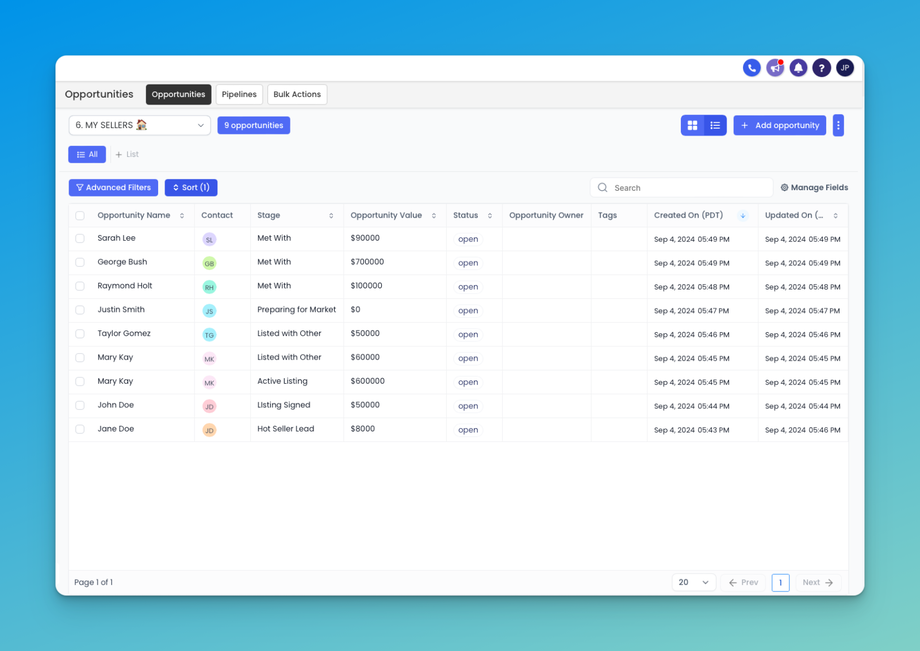 Opportunities in a Listed View: See all your opportunities organized in a clear, tabular format. This makes it easier to scan through and find the information you need quickly.