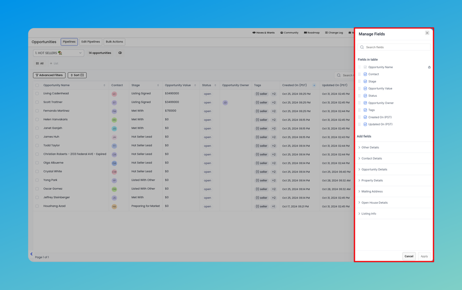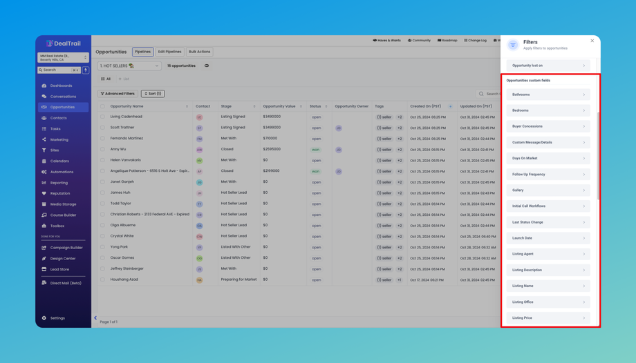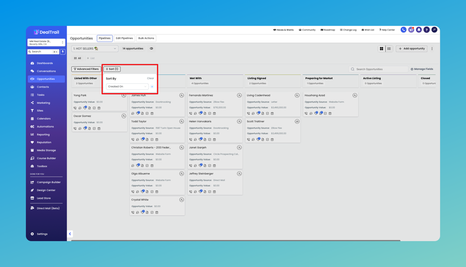 Sorting Across Fields: Easily sort your opportunities by any field, allowing you to prioritize and manage them more effectively.