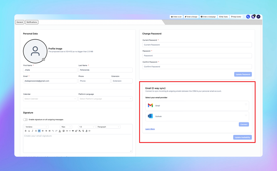 Connect your email account for seamless synchronization of incoming and outgoing emails: