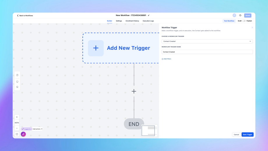 • Contact Created: Add contacts to the pipeline when they are imported or created.