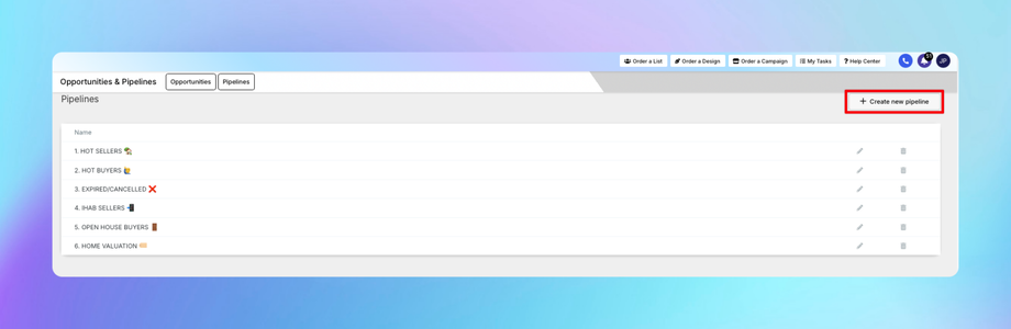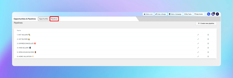 1. Navigate to Settings > Opportunities & Pipelines > Pipelines